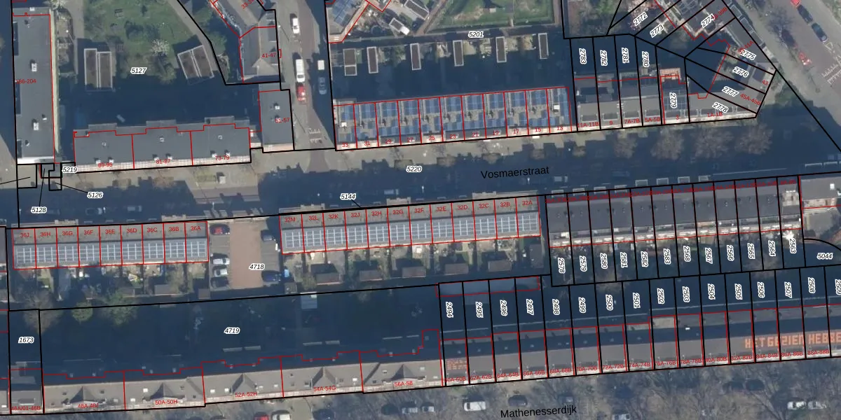 Vosmaerstraat 32-F is gelegen op kadastraal perceel RTD10Z4718. Deze kadastrale aanduiding is uniek en wordt gebruikt door het Kadaster om eigendomsrechten en andere zakelijke rechten vast te leggen. Het perceel maakt onderdeel uit van de kadastrale gemeente Rotterdam.