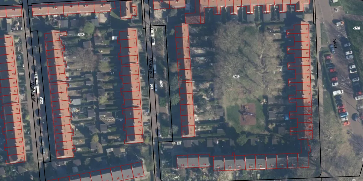 Vossepad 16 is gelegen op kadastraal perceel CLS00F3103. Deze kadastrale aanduiding is uniek en wordt gebruikt door het Kadaster om eigendomsrechten en andere zakelijke rechten vast te leggen. Het perceel maakt onderdeel uit van de kadastrale gemeente Charlois.