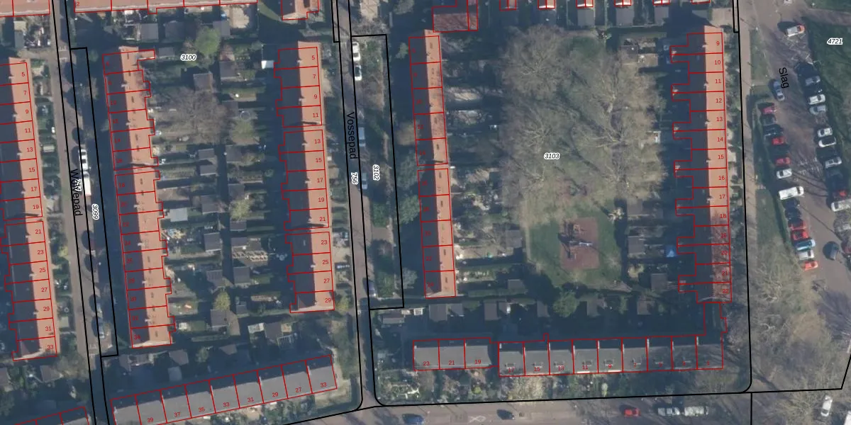 Vossepad 18 is gelegen op kadastraal perceel CLS00F3103. Deze kadastrale aanduiding is uniek en wordt gebruikt door het Kadaster om eigendomsrechten en andere zakelijke rechten vast te leggen. Het perceel maakt onderdeel uit van de kadastrale gemeente Charlois.