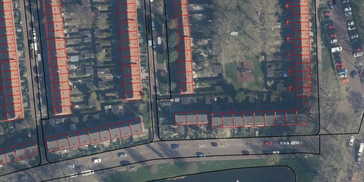 Vossepad 24 is gelegen op kadastraal perceel CLS00F3103. Deze kadastrale aanduiding is uniek en wordt gebruikt door het Kadaster om eigendomsrechten en andere zakelijke rechten vast te leggen. Het perceel maakt onderdeel uit van de kadastrale gemeente Charlois.