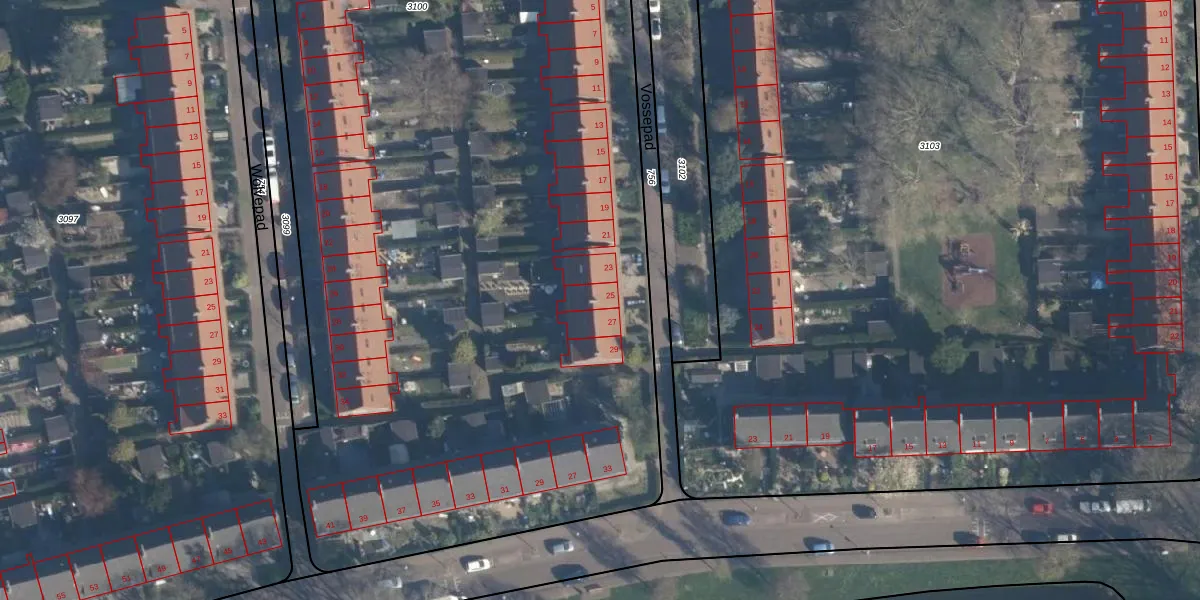 Vossepad 25 is gelegen op kadastraal perceel CLS00F3100. Deze kadastrale aanduiding is uniek en wordt gebruikt door het Kadaster om eigendomsrechten en andere zakelijke rechten vast te leggen. Het perceel maakt onderdeel uit van de kadastrale gemeente Charlois.