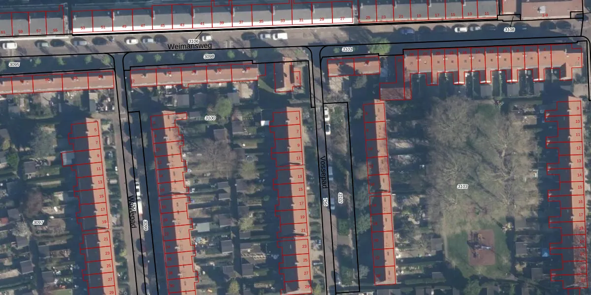 Vossepad 9 is gelegen op kadastraal perceel CLS00F3100. Deze kadastrale aanduiding is uniek en wordt gebruikt door het Kadaster om eigendomsrechten en andere zakelijke rechten vast te leggen. Het perceel maakt onderdeel uit van de kadastrale gemeente Charlois.