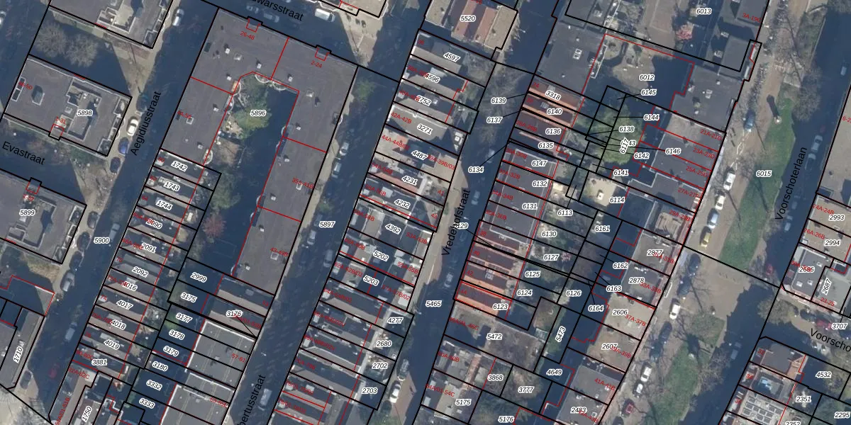 Vredehofstraat 43 is gelegen op kadastraal perceel KLG00G4232. Deze kadastrale aanduiding is uniek en wordt gebruikt door het Kadaster om eigendomsrechten en andere zakelijke rechten vast te leggen. Het perceel maakt onderdeel uit van de kadastrale gemeente Kralingen.