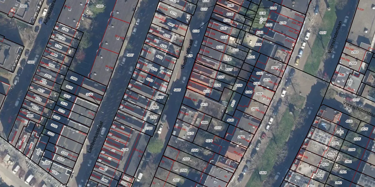 Vredehofstraat 46-B is gelegen op kadastraal perceel KLG00G5472. Deze kadastrale aanduiding is uniek en wordt gebruikt door het Kadaster om eigendomsrechten en andere zakelijke rechten vast te leggen. Het perceel maakt onderdeel uit van de kadastrale gemeente Kralingen.