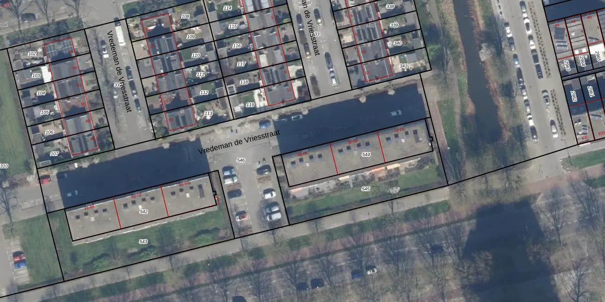 Het perceel waarop Vredeman de Vriesstraat 44 staat heeft een oppervlakte van 546 m². Dit is een groot perceel. De perceeloppervlakte wordt geregistreerd door het Kadaster. Gedetailleerde informatie over de maten van dit perceel kunt u vinden in het rapport Kadastrale kaart met maatvoering van Vredeman de Vriesstraat 44.