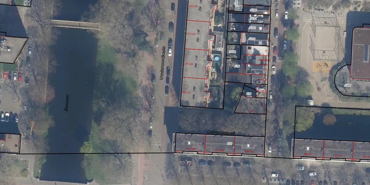 Vredenoordkade 132 is gelegen op kadastraal perceel RTD04AE875. Deze kadastrale aanduiding is uniek en wordt gebruikt door het Kadaster om eigendomsrechten en andere zakelijke rechten vast te leggen. Het perceel maakt onderdeel uit van de kadastrale gemeente Rotterdam.