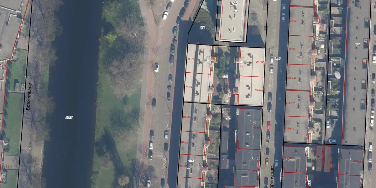 Het adres is gelegen op perceel 871 in de sectie AE en de kadastrale gemeente Rotterdam. De kadastrale aanduiding is aldus RTD04-AE-871. Het perceel is met 1305 m² relatief groot. Het gemiddelde ligt in de kadastrale gemeente Rotterdam op 1239,97 m². De grootste perceeloppervlakte in de kadastrale gemeente is 17,3 ha. De kleinste oppervlakte bedraagt 0 m². Op het perceel zijn 28 adressen aanwezig. De huidige grenzen van het perceel zijn digitaal in de Basisregistratie Kadaster (BRK) geregistreerd op 10-11-2003.