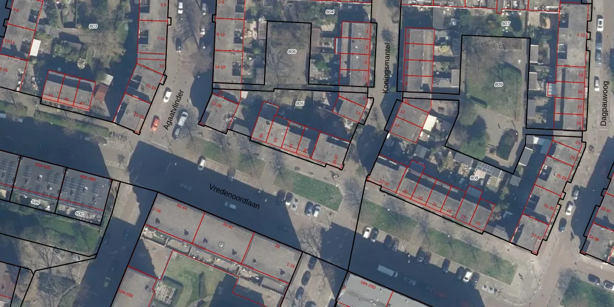 Vredenoordlaan 39 is gelegen op kadastraal perceel RTD04AE805. Deze kadastrale aanduiding is uniek en wordt gebruikt door het Kadaster om eigendomsrechten en andere zakelijke rechten vast te leggen. Het perceel maakt onderdeel uit van de kadastrale gemeente Rotterdam.