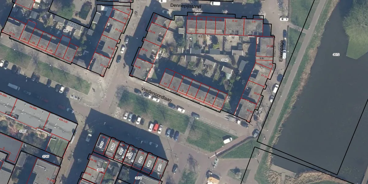 Het perceel waarop Vredenoordlaan 9 staat heeft een oppervlakte van 3320 m². Dit is een zeer groot perceel. De perceeloppervlakte wordt geregistreerd door het Kadaster. Gedetailleerde informatie over de maten van dit perceel kunt u vinden in het rapport Kadastrale kaart met maatvoering van Vredenoordlaan 9.