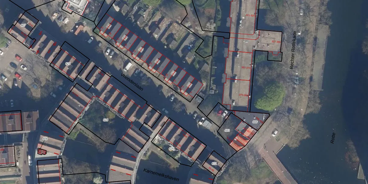 Vriendenlaan 11 is gelegen op kadastraal perceel RTD08AD663. Deze kadastrale aanduiding is uniek en wordt gebruikt door het Kadaster om eigendomsrechten en andere zakelijke rechten vast te leggen. Het perceel maakt onderdeel uit van de kadastrale gemeente Rotterdam.