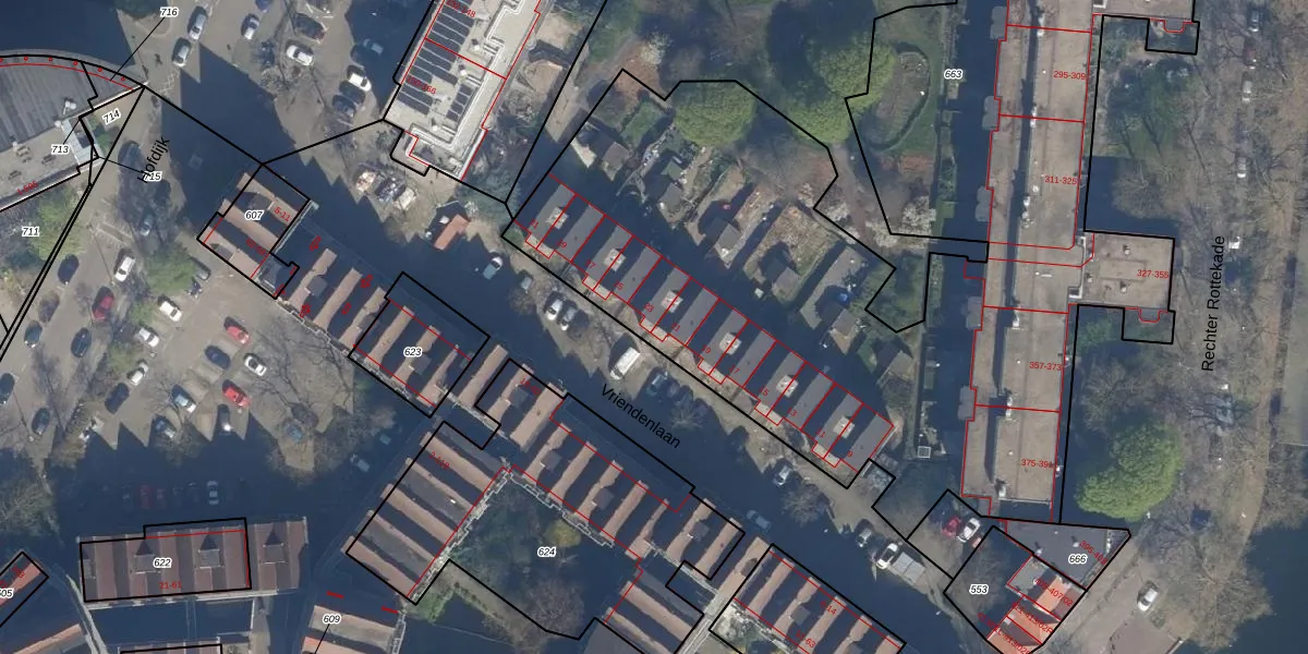 Vriendenlaan 23 is gelegen op kadastraal perceel RTD08AD663. Deze kadastrale aanduiding is uniek en wordt gebruikt door het Kadaster om eigendomsrechten en andere zakelijke rechten vast te leggen. Het perceel maakt onderdeel uit van de kadastrale gemeente Rotterdam.