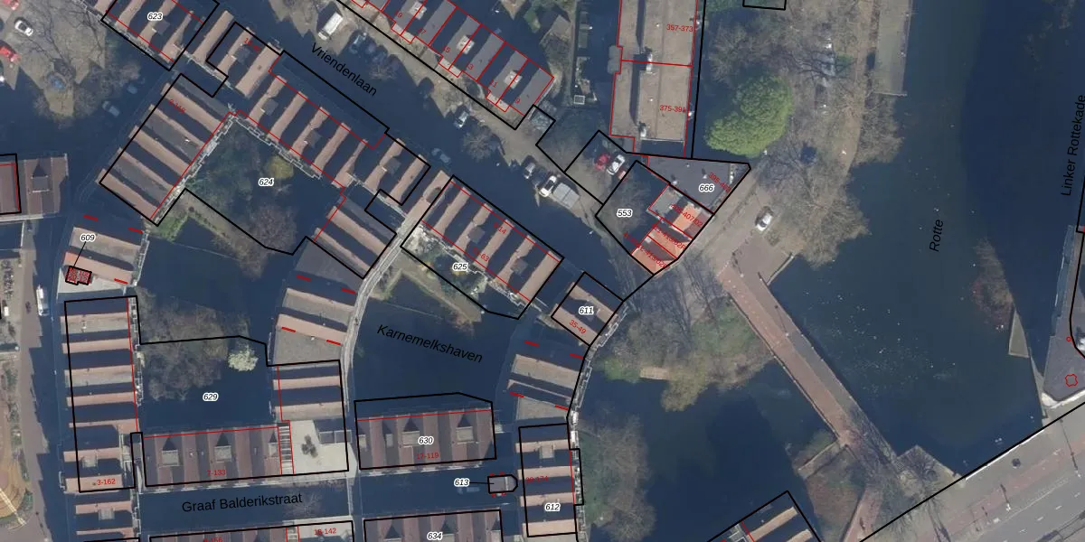 Vriendenlaan 6 is gelegen op kadastraal perceel RTD08AD625. Deze kadastrale aanduiding is uniek en wordt gebruikt door het Kadaster om eigendomsrechten en andere zakelijke rechten vast te leggen. Het perceel maakt onderdeel uit van de kadastrale gemeente Rotterdam.