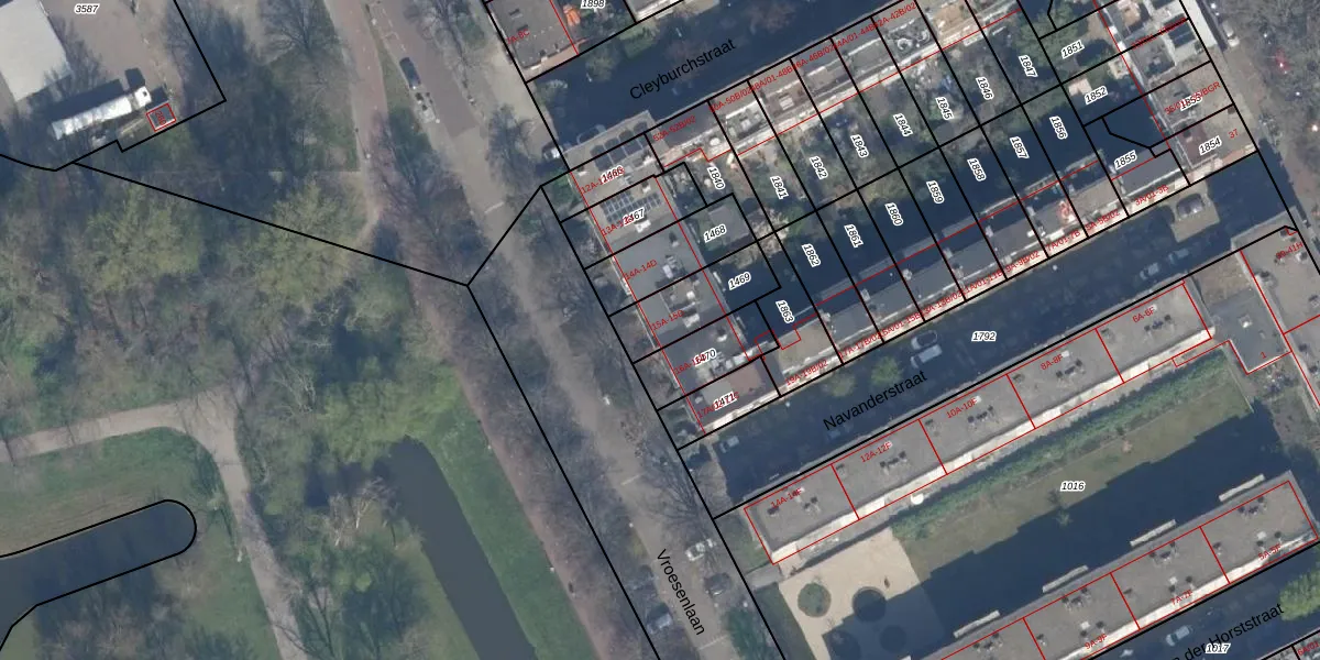 Vroesenlaan 15-A is gelegen op kadastraal perceel RTD10AB1469. Deze kadastrale aanduiding is uniek en wordt gebruikt door het Kadaster om eigendomsrechten en andere zakelijke rechten vast te leggen. Het perceel maakt onderdeel uit van de kadastrale gemeente Rotterdam.
