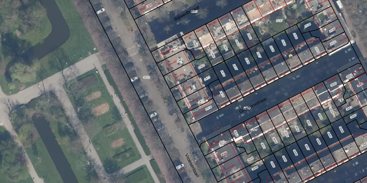 Het perceel waarop Vroesenlaan 36-B staat heeft een oppervlakte van 201 m². Dit is een middelgroot perceel. De perceeloppervlakte wordt geregistreerd door het Kadaster. Gedetailleerde informatie over de maten van dit perceel kunt u vinden in het rapport Kadastrale kaart met maatvoering van Vroesenlaan 36-B.