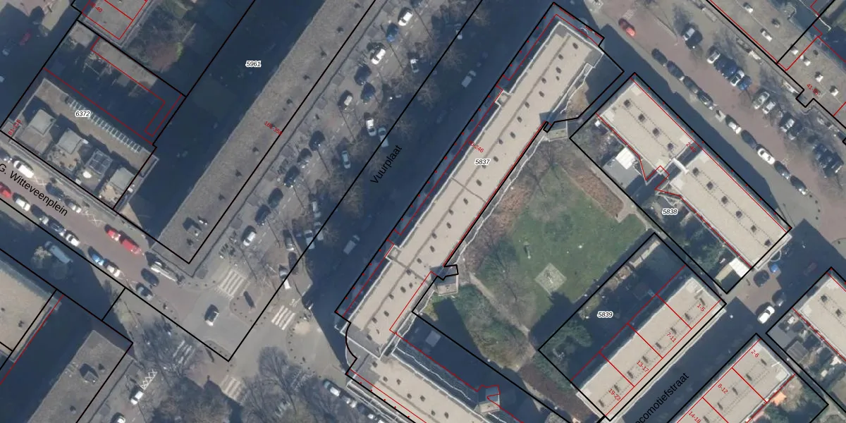Het perceel waarop Vuurplaat 166 staat heeft een oppervlakte van 2610 m². Dit is een zeer groot perceel. De perceeloppervlakte wordt geregistreerd door het Kadaster. Gedetailleerde informatie over de maten van dit perceel kunt u vinden in het rapport Kadastrale kaart met maatvoering van Vuurplaat 166.