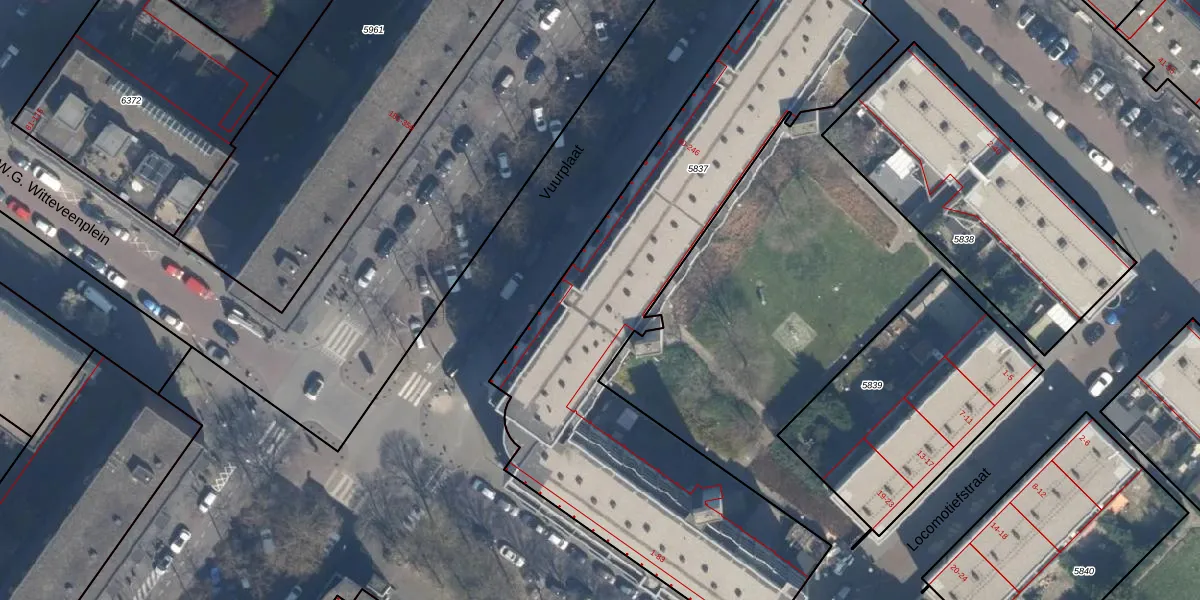 Het adres is gelegen op perceel 5837 in de sectie Q en de kadastrale gemeente Rotterdam. De kadastrale aanduiding is aldus RTD05-Q-5837. De oppervlakte van het perceel is 2610 m². Dat is groter dan gemiddeld in Rotterdam, waar de gemiddelde perceeloppervlakte op 1402,06 m² ligt. Het grootste perceel in de kadastrale gemeente is 36,8 ha. Het kleinste perceel heeft een oppervlakte van 0 m². Op het perceel liggen in totaal 128 adressen. De huidige grenzen van het perceel zijn digitaal in de Basisregistratie Kadaster (BRK) geregistreerd op 12-05-2003.