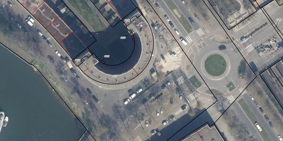 Het adres is gelegen op perceel 6237 in de sectie Q en de kadastrale gemeente Rotterdam. De kadastrale aanduiding is aldus RTD05-Q-6237. Het perceel is 1045 m² groot. Dat is kleiner dan de gemiddelde perceeloppervlakte in Rotterdam, dat op 1401,79 m² ligt. De grootste perceeloppervlakte in de kadastrale gemeente is 36,8 ha. De kleinste oppervlakte bedraagt 0 m². Er zijn 8 adressen aanwezig op het perceel. De huidige grenzen van het perceel zijn digitaal in de Basisregistratie Kadaster (BRK) geregistreerd op 22-07-2009.