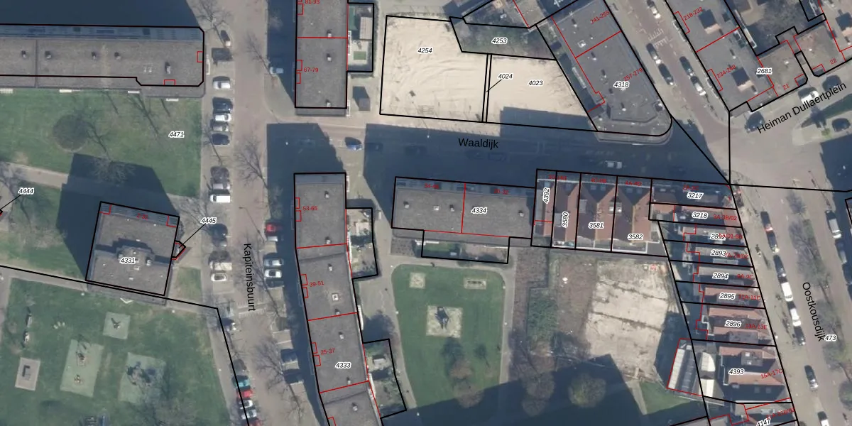Het perceel waarop Waaldijk 44 staat heeft een oppervlakte van 517 m². Dit is een groot perceel. De perceeloppervlakte wordt geregistreerd door het Kadaster. Gedetailleerde informatie over de maten van dit perceel kunt u vinden in het rapport Kadastrale kaart met maatvoering van Waaldijk 44.
