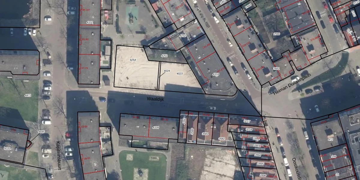 Waaldijk 9 is gelegen op kadastraal perceel DHV00A4023. Deze kadastrale aanduiding is uniek en wordt gebruikt door het Kadaster om eigendomsrechten en andere zakelijke rechten vast te leggen. Het perceel maakt onderdeel uit van de kadastrale gemeente Delfshaven.