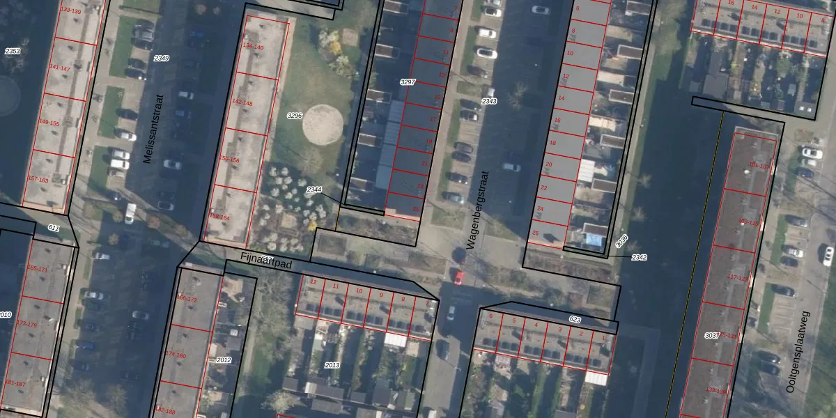 Het perceel waarop Wagenbergstraat 25 staat heeft een oppervlakte van 1421 m². Dit is een zeer groot perceel. De perceeloppervlakte wordt geregistreerd door het Kadaster. Gedetailleerde informatie over de maten van dit perceel kunt u vinden in het rapport Kadastrale kaart met maatvoering van Wagenbergstraat 25.