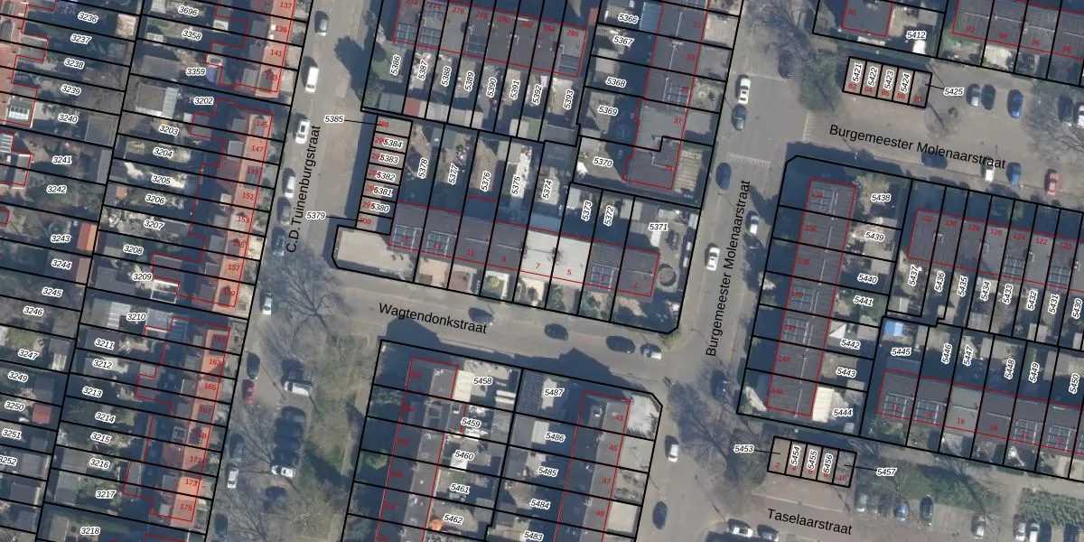 Gebruik de zoekbalk of klik op een perceel voor informatie over de adressen binnen dit perceel.