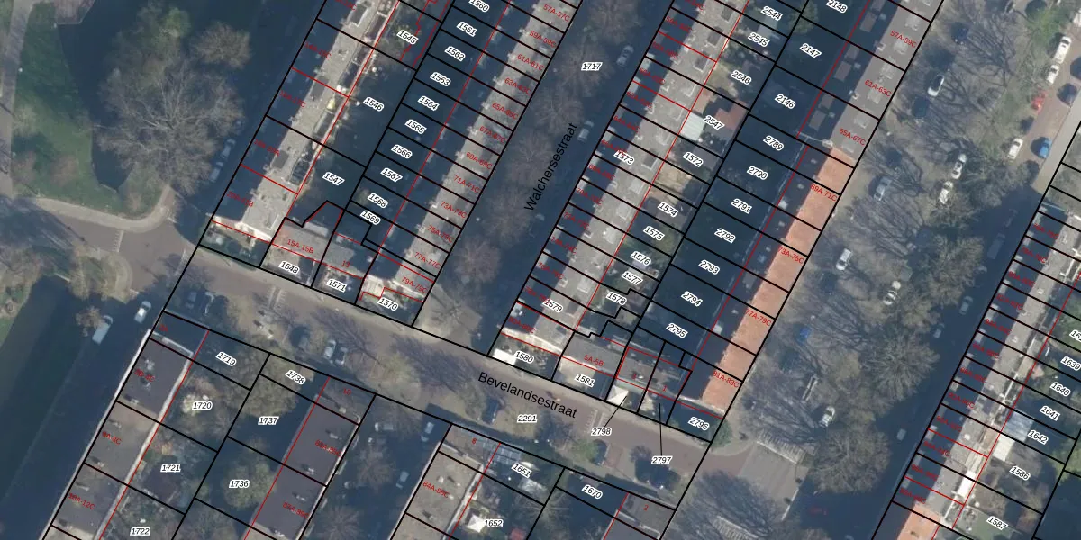Het perceel waarop Walchersestraat 76-B staat heeft een oppervlakte van 106 m². Dit is een middelgroot perceel. De perceeloppervlakte wordt geregistreerd door het Kadaster. Gedetailleerde informatie over de maten van dit perceel kunt u vinden in het rapport Kadastrale kaart met maatvoering van Walchersestraat 76-B.