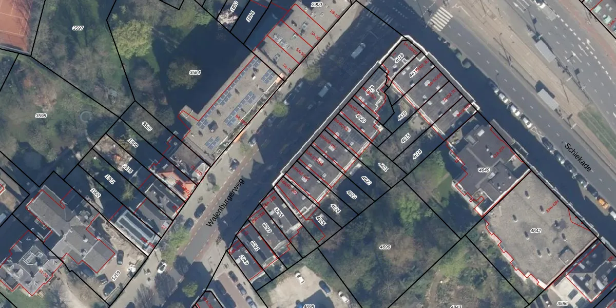 Walenburgerweg 12-B is gelegen op kadastraal perceel RTD06S4623. Deze kadastrale aanduiding is uniek en wordt gebruikt door het Kadaster om eigendomsrechten en andere zakelijke rechten vast te leggen. Het perceel maakt onderdeel uit van de kadastrale gemeente Rotterdam.