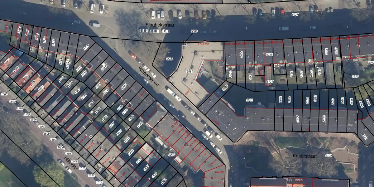 Wapenstraat 20-B is gelegen op kadastraal perceel CLS00G5587. Deze kadastrale aanduiding is uniek en wordt gebruikt door het Kadaster om eigendomsrechten en andere zakelijke rechten vast te leggen. Het perceel maakt onderdeel uit van de kadastrale gemeente Charlois.