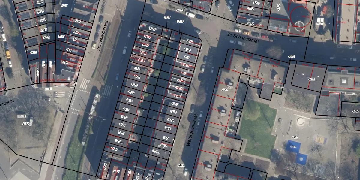 Watergeusstraat 155-A is gelegen op kadastraal perceel DHV00A3535. Deze kadastrale aanduiding is uniek en wordt gebruikt door het Kadaster om eigendomsrechten en andere zakelijke rechten vast te leggen. Het perceel maakt onderdeel uit van de kadastrale gemeente Delfshaven.