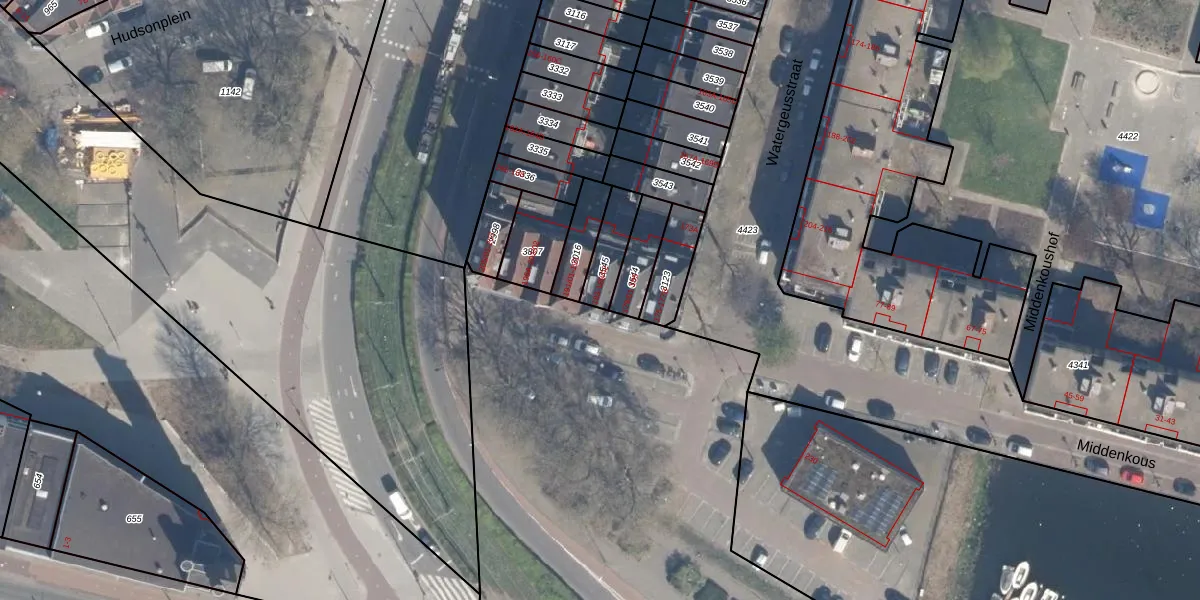 Watergeusstraat 189-02 is gelegen op kadastraal perceel DHV00A3545. Deze kadastrale aanduiding is uniek en wordt gebruikt door het Kadaster om eigendomsrechten en andere zakelijke rechten vast te leggen. Het perceel maakt onderdeel uit van de kadastrale gemeente Delfshaven.