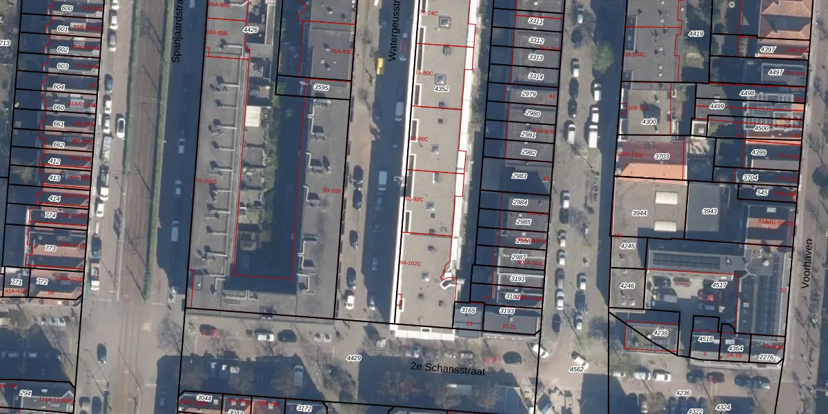 Watergeusstraat 92-B is gelegen op kadastraal perceel DHV00A4352. Deze kadastrale aanduiding is uniek en wordt gebruikt door het Kadaster om eigendomsrechten en andere zakelijke rechten vast te leggen. Het perceel maakt onderdeel uit van de kadastrale gemeente Delfshaven.
