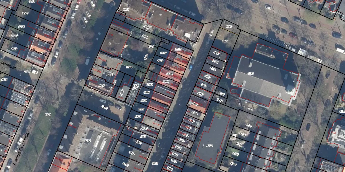 Gebruik de zoekbalk of klik op een perceel voor informatie over de adressen binnen dit perceel.