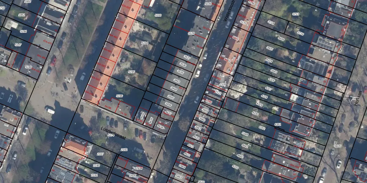 Het perceel waarop Waterloostraat 71-B staat heeft een oppervlakte van 94 m². Dit is een klein perceel. De perceeloppervlakte wordt geregistreerd door het Kadaster. Gedetailleerde informatie over de maten van dit perceel kunt u vinden in het rapport Kadastrale kaart met maatvoering van Waterloostraat 71-B.