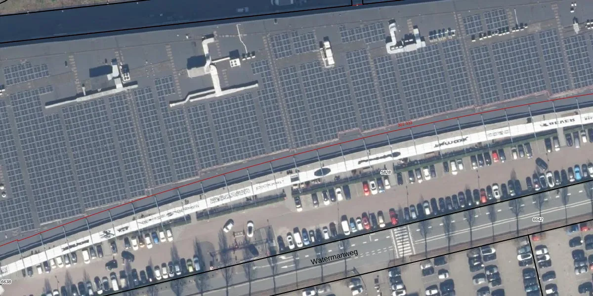Het perceel waarop Watermanweg 321-A staat heeft een oppervlakte van 2,2 ha. Dit is een zeer groot perceel. De perceeloppervlakte wordt geregistreerd door het Kadaster. Gedetailleerde informatie over de maten van dit perceel kunt u vinden in het rapport Kadastrale kaart met maatvoering van Watermanweg 321-A.