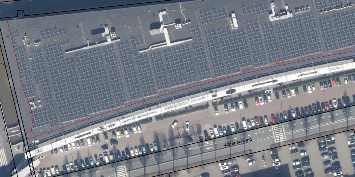 Het perceel waarop Watermanweg 323 staat heeft een oppervlakte van 2,2 ha. Dit is een zeer groot perceel. De perceeloppervlakte wordt geregistreerd door het Kadaster. Gedetailleerde informatie over de maten van dit perceel kunt u vinden in het rapport Kadastrale kaart met maatvoering van Watermanweg 323.