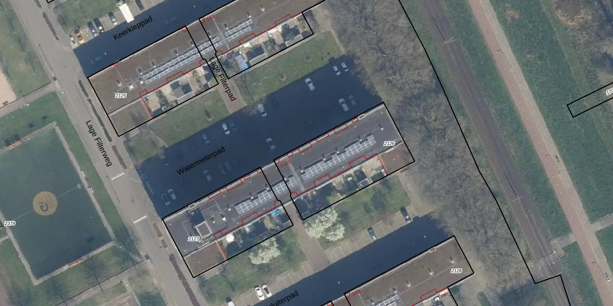 Het perceel waarop Watermeterpad 121 staat heeft een oppervlakte van 892 m². Dit is een groot perceel. De perceeloppervlakte wordt geregistreerd door het Kadaster. Gedetailleerde informatie over de maten van dit perceel kunt u vinden in het rapport Kadastrale kaart met maatvoering van Watermeterpad 121.