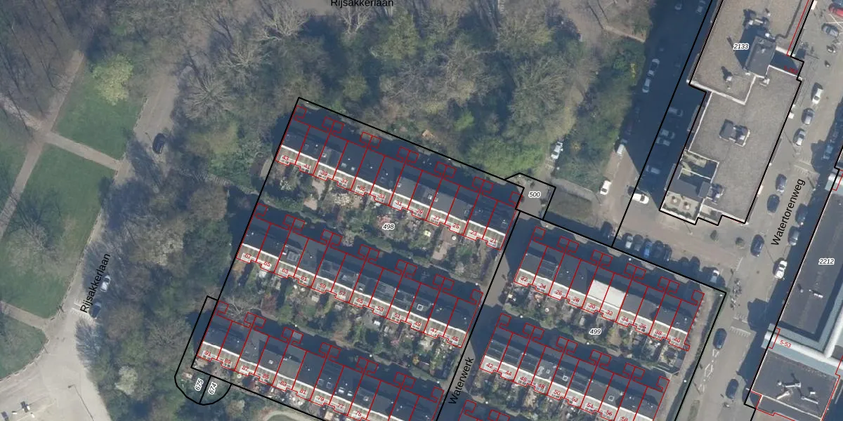 Het perceel waarop Waterwerk 29 staat heeft een oppervlakte van 4047 m². Dit is een zeer groot perceel. De perceeloppervlakte wordt geregistreerd door het Kadaster. Gedetailleerde informatie over de maten van dit perceel kunt u vinden in het rapport Kadastrale kaart met maatvoering van Waterwerk 29.