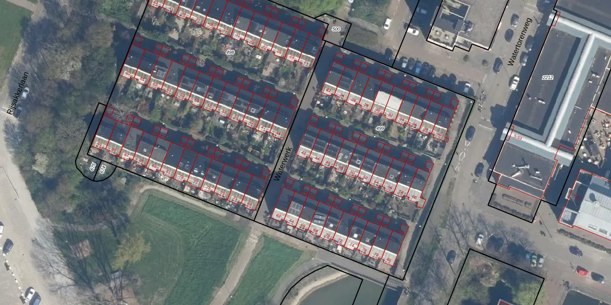 Het perceel waarop Waterwerk 42 staat heeft een oppervlakte van 3338 m². Dit is een zeer groot perceel. De perceeloppervlakte wordt geregistreerd door het Kadaster. Gedetailleerde informatie over de maten van dit perceel kunt u vinden in het rapport Kadastrale kaart met maatvoering van Waterwerk 42.
