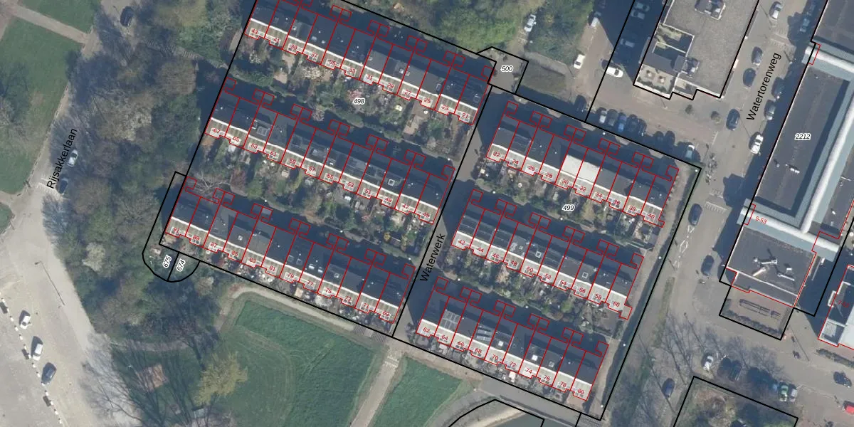 Het perceel waarop Waterwerk 45 staat heeft een oppervlakte van 4047 m². Dit is een zeer groot perceel. De perceeloppervlakte wordt geregistreerd door het Kadaster. Gedetailleerde informatie over de maten van dit perceel kunt u vinden in het rapport Kadastrale kaart met maatvoering van Waterwerk 45.