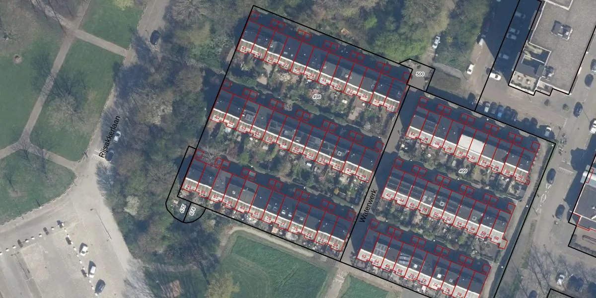 Het perceel waarop Waterwerk 55 staat heeft een oppervlakte van 4047 m². Dit is een zeer groot perceel. De perceeloppervlakte wordt geregistreerd door het Kadaster. Gedetailleerde informatie over de maten van dit perceel kunt u vinden in het rapport Kadastrale kaart met maatvoering van Waterwerk 55.