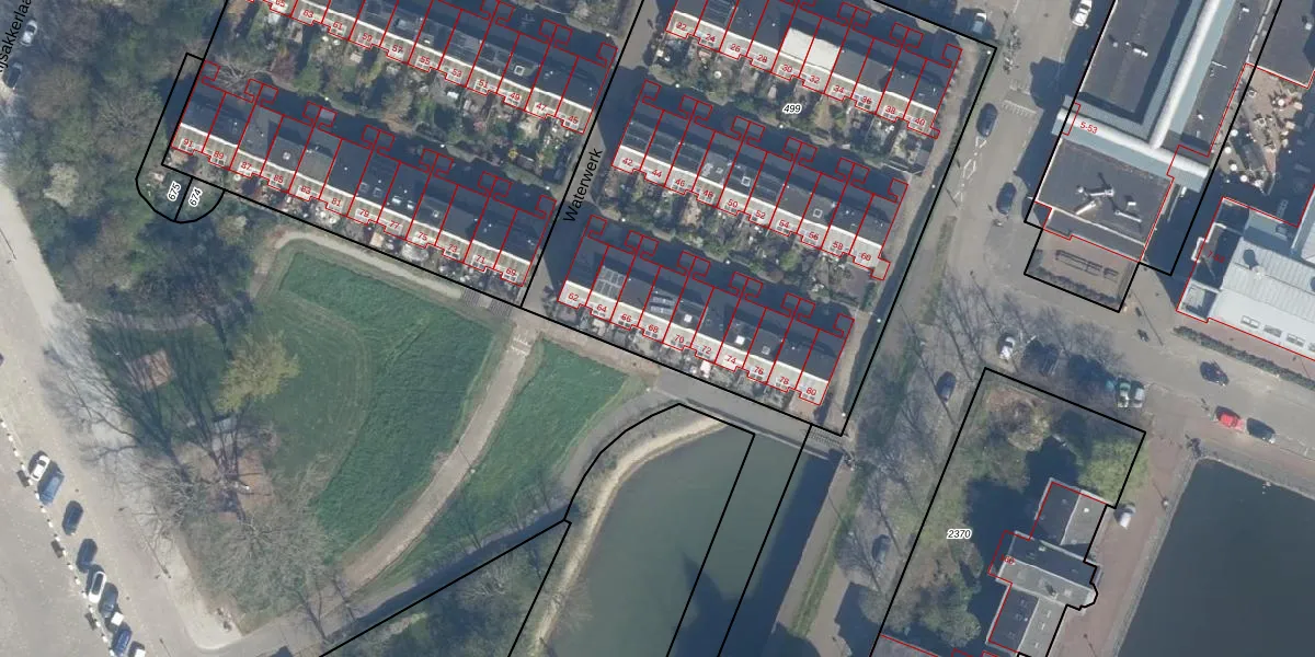 Het perceel waarop Waterwerk 68 staat heeft een oppervlakte van 3338 m². Dit is een zeer groot perceel. De perceeloppervlakte wordt geregistreerd door het Kadaster. Gedetailleerde informatie over de maten van dit perceel kunt u vinden in het rapport Kadastrale kaart met maatvoering van Waterwerk 68.