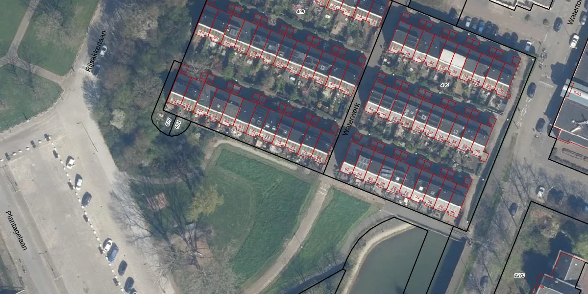 Het perceel waarop Waterwerk 73 staat heeft een oppervlakte van 4047 m². Dit is een zeer groot perceel. De perceeloppervlakte wordt geregistreerd door het Kadaster. Gedetailleerde informatie over de maten van dit perceel kunt u vinden in het rapport Kadastrale kaart met maatvoering van Waterwerk 73.