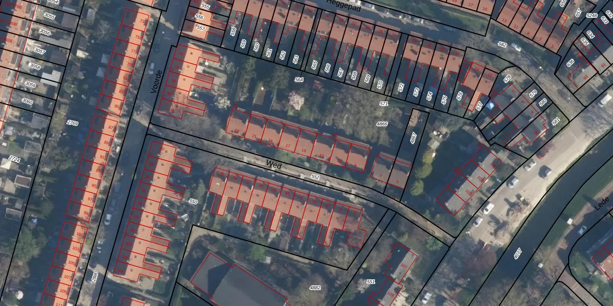 Het perceel waarop Wed 15 staat heeft een oppervlakte van 3396 m². Dit is een zeer groot perceel. De perceeloppervlakte wordt geregistreerd door het Kadaster. Gedetailleerde informatie over de maten van dit perceel kunt u vinden in het rapport Kadastrale kaart met maatvoering van Wed 15.