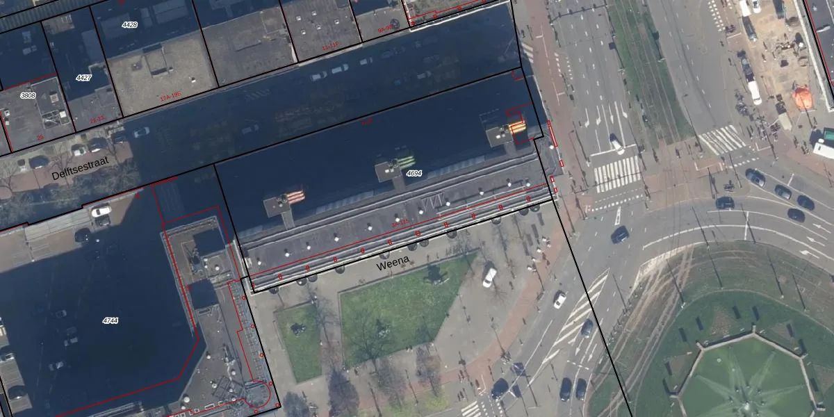 Het perceel waarop Weena 103 staat heeft een oppervlakte van 2476 m². Dit is een zeer groot perceel. De perceeloppervlakte wordt geregistreerd door het Kadaster. Gedetailleerde informatie over de maten van dit perceel kunt u vinden in het rapport Kadastrale kaart met maatvoering van Weena 103.