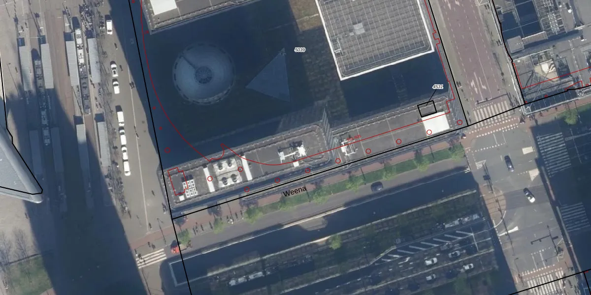 Het perceel waarop Weena 501 staat heeft een oppervlakte van 8540 m². Dit is een zeer groot perceel. De perceeloppervlakte wordt geregistreerd door het Kadaster. Gedetailleerde informatie over de maten van dit perceel kunt u vinden in het rapport Kadastrale kaart met maatvoering van Weena 501.