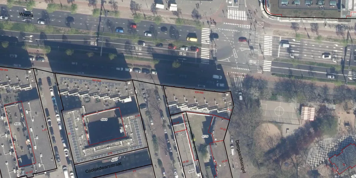 Het perceel waarop Weena 938 staat heeft een oppervlakte van 1240 m². Dit is een zeer groot perceel. De perceeloppervlakte wordt geregistreerd door het Kadaster. Gedetailleerde informatie over de maten van dit perceel kunt u vinden in het rapport Kadastrale kaart met maatvoering van Weena 938.