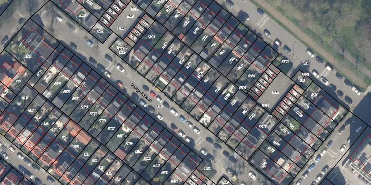 Weigelialaan 23 is gelegen op kadastraal perceel SBK01C2249. Deze kadastrale aanduiding is uniek en wordt gebruikt door het Kadaster om eigendomsrechten en andere zakelijke rechten vast te leggen. Het perceel maakt onderdeel uit van de kadastrale gemeente Schiebroek.