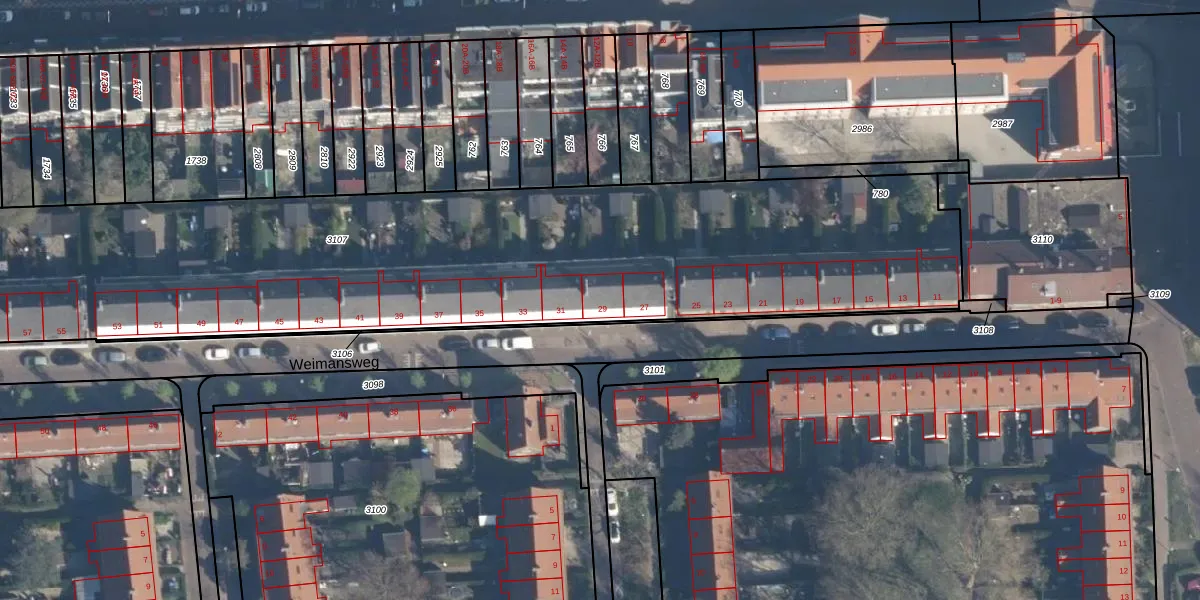 Weimansweg 29 is gelegen op kadastraal perceel CLS00F3107. Deze kadastrale aanduiding is uniek en wordt gebruikt door het Kadaster om eigendomsrechten en andere zakelijke rechten vast te leggen. Het perceel maakt onderdeel uit van de kadastrale gemeente Charlois.