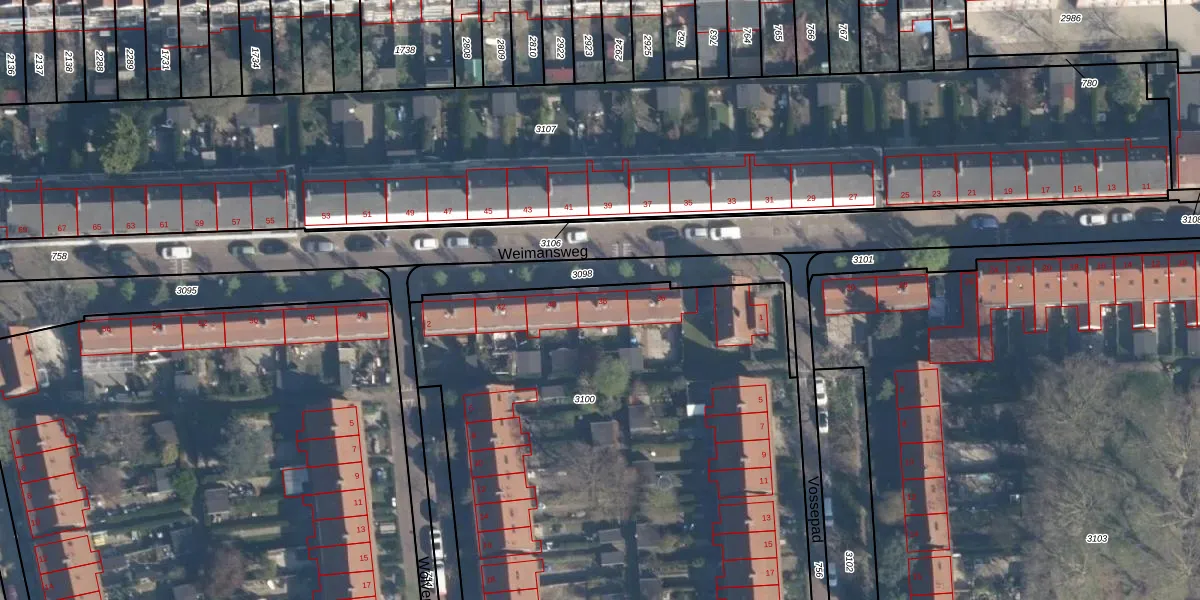 Weimansweg 38 is gelegen op kadastraal perceel CLS00F3100. Deze kadastrale aanduiding is uniek en wordt gebruikt door het Kadaster om eigendomsrechten en andere zakelijke rechten vast te leggen. Het perceel maakt onderdeel uit van de kadastrale gemeente Charlois.