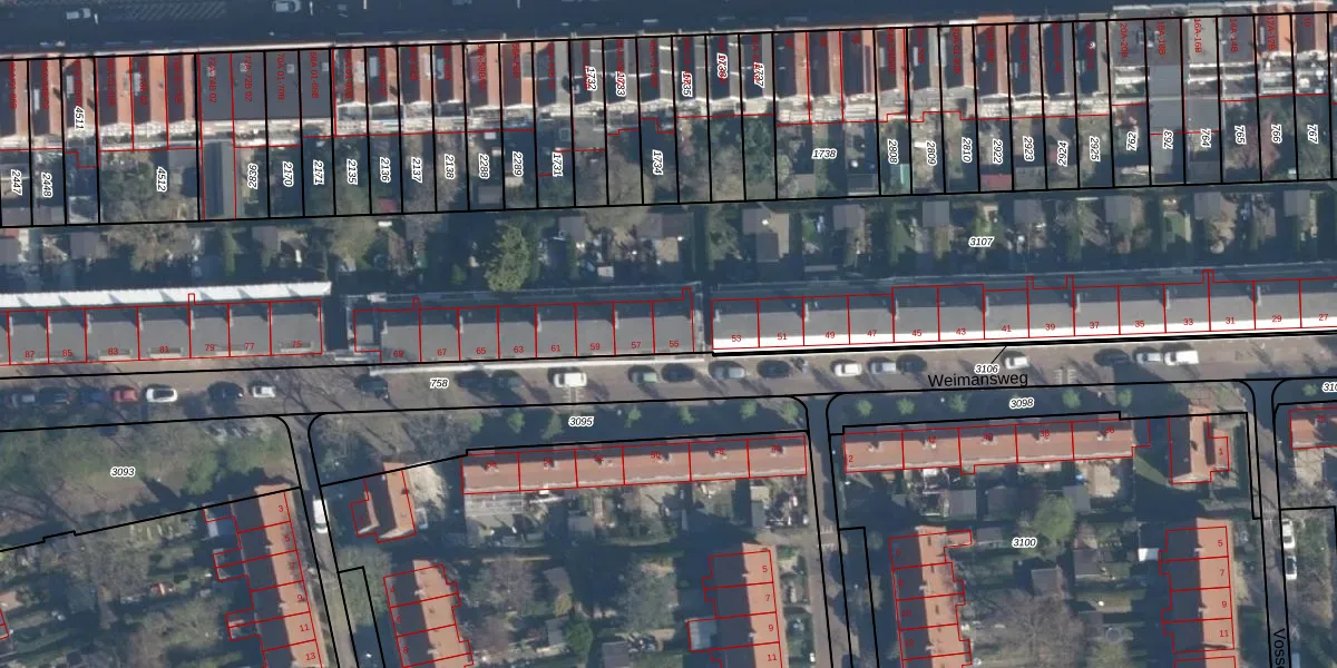 Weimansweg 55 is gelegen op kadastraal perceel CLS00F3107. Deze kadastrale aanduiding is uniek en wordt gebruikt door het Kadaster om eigendomsrechten en andere zakelijke rechten vast te leggen. Het perceel maakt onderdeel uit van de kadastrale gemeente Charlois.